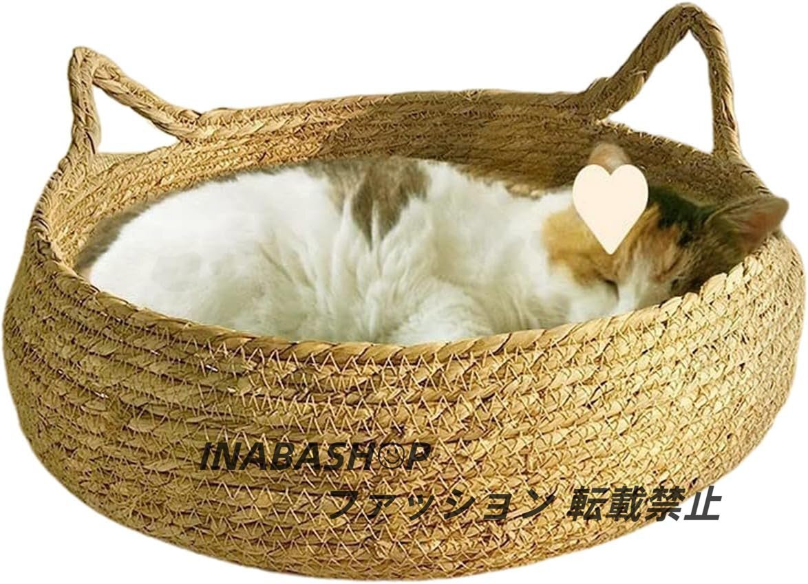 - 猫ベッド 爪とぎ ひんやり夏 ペットベッド 犬 猫 ベッド クッション マット 洗える 円形 かわいい手編み 藤編み(46*15CM)