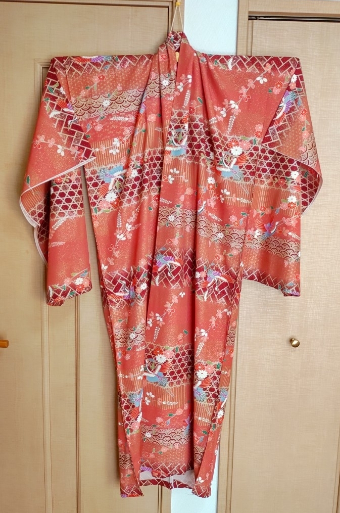 > 十三参り仮仕立て正絹着物(赤系/青海波や鶴柄)・在庫処分