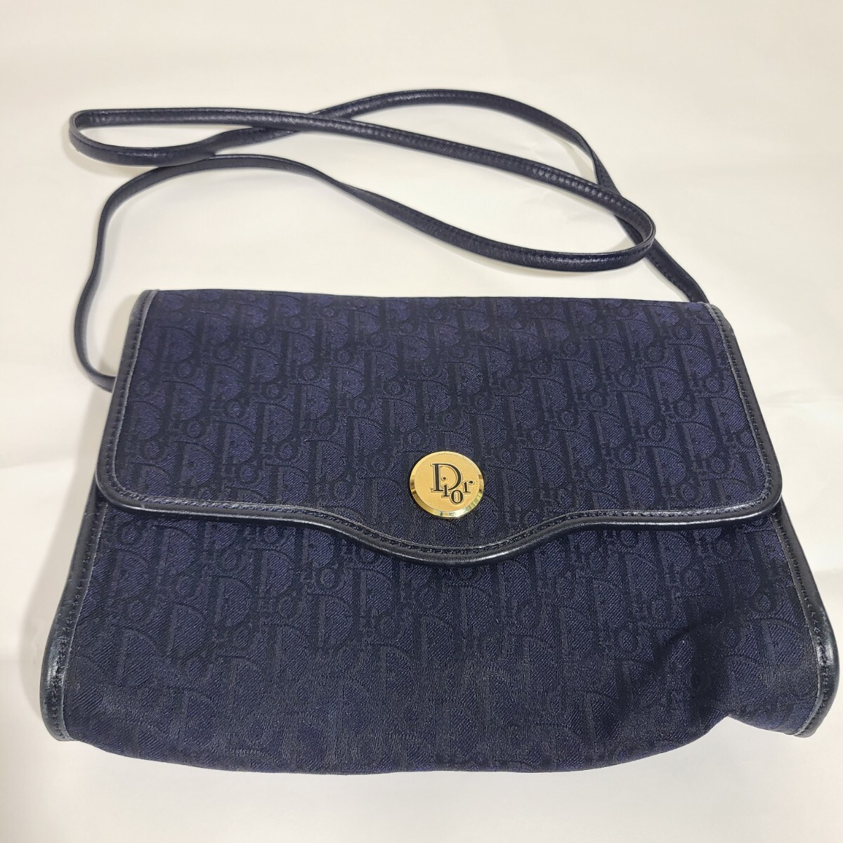> 【ヴィンテージ】クリスチャンディオール トロッター ロゴ金具 ショルダーバッグ ChristianDior キャンバス ネイビー