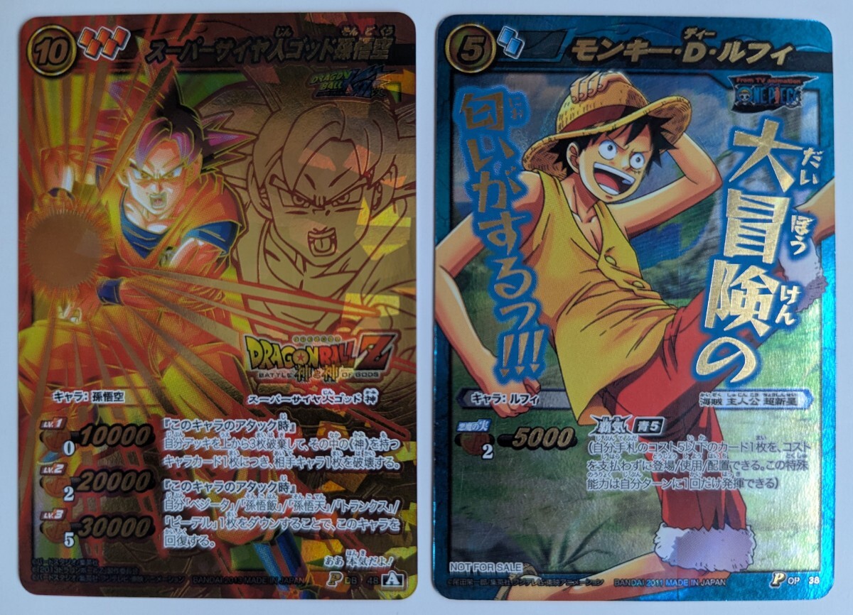 - ■即決■ミラクルバトルカードダス 2枚セット プロモ ドラゴンボール スーパーサイヤ人ゴッド孫悟空 & ワンピース モンキー・D・ルフィ
