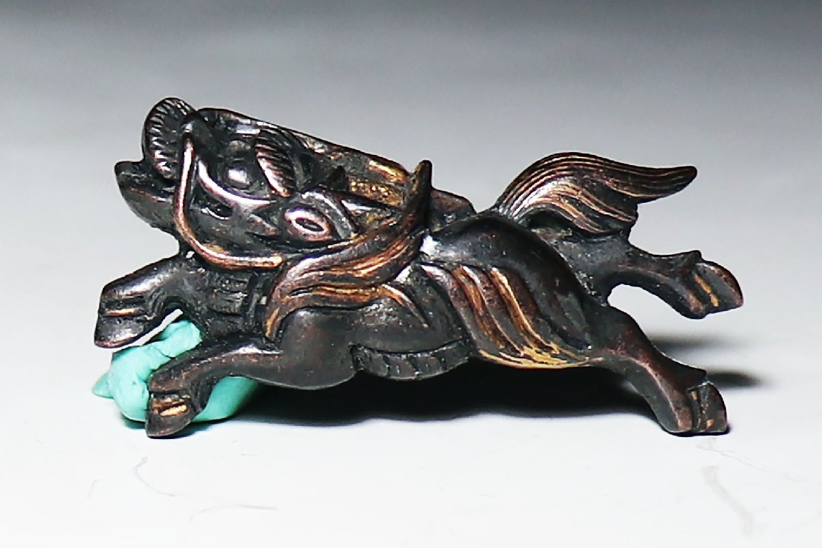 - 【桃】刀装具:金工銅地鍍金麒麟片目貫