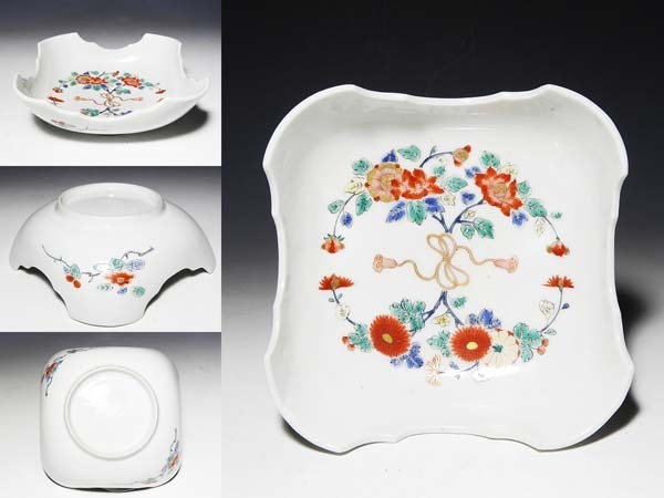 - 【桃】大聖寺九谷色絵柿右衛門写し四方皿
