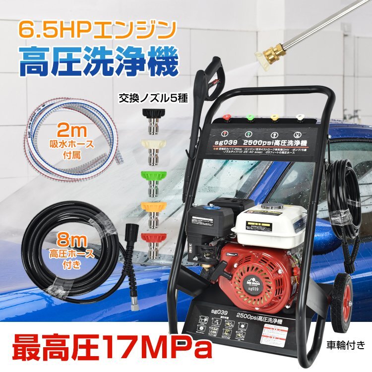 > 高圧洗浄機 農機具 業務用 エンジン式 キャスター ガソリン 17MPa 6.5馬力 8L/min コードレス 大掃除 洗浄 防災 高出力 外壁掃除 sg039