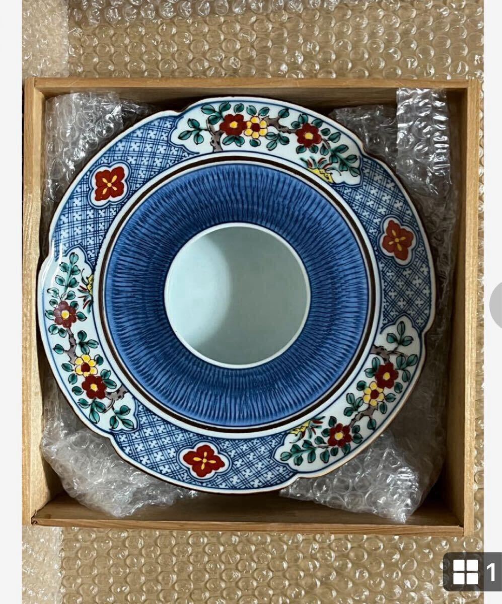 - 『 灰皿 陶器 喫煙具 』在銘 haizara 灰 トレイ ashtray 花模様 ※外箱⇒欠けあり※