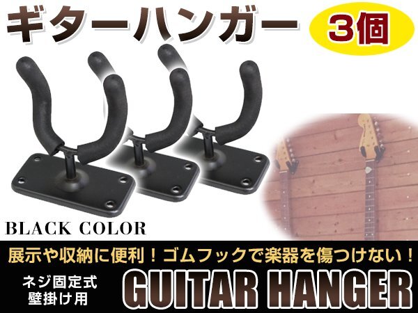 > 壁掛けタイプ! 頑丈です! ギター ハンガー フック スタンド ディスプレイ ネジ 取付け ベース・エレキ・アコギ・ガットギター可!3個
