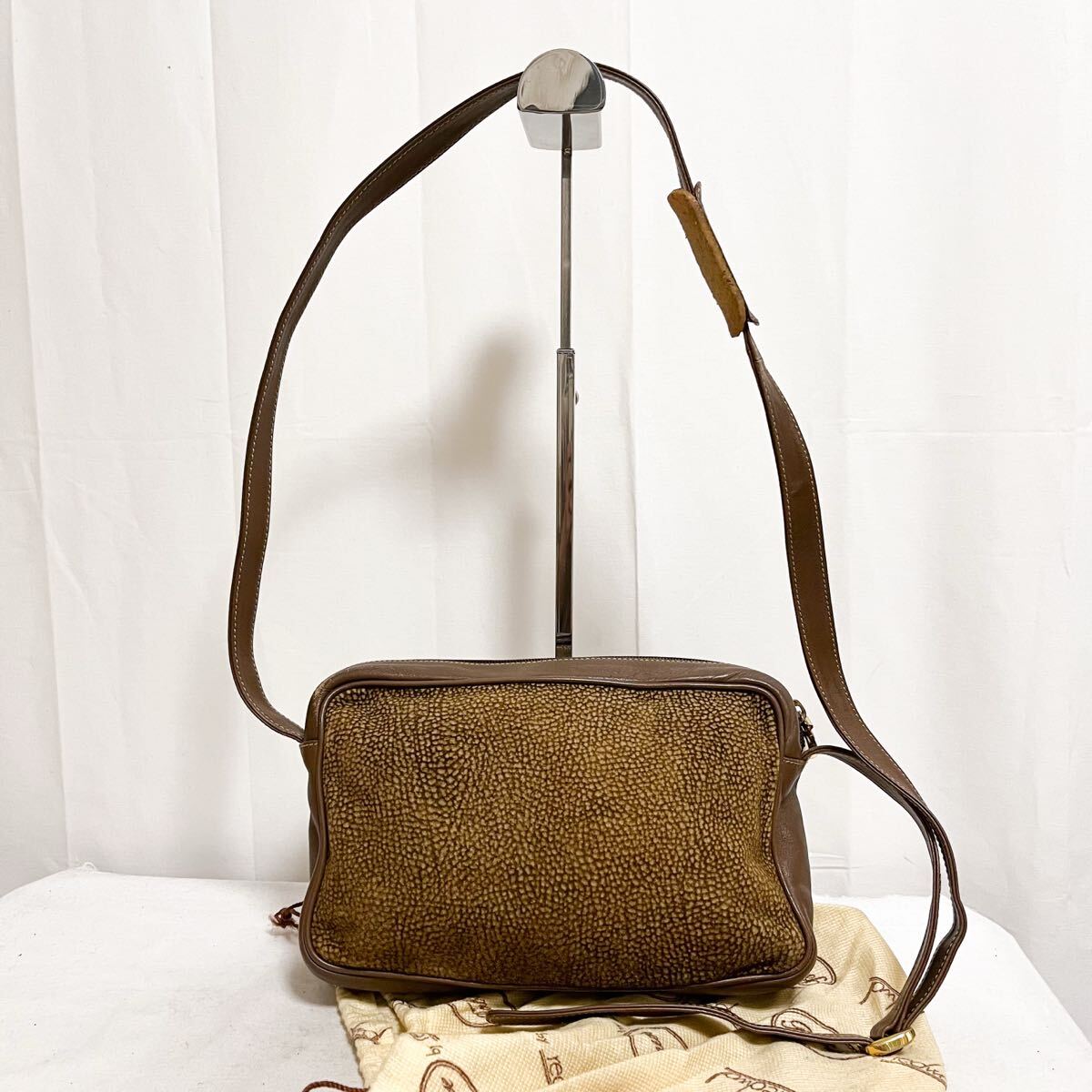 - 和862★ BORBONESE ボルボネーゼ ショルダーバッグ スエード レザー 斜めがけ ベージュ ブラウン レディース