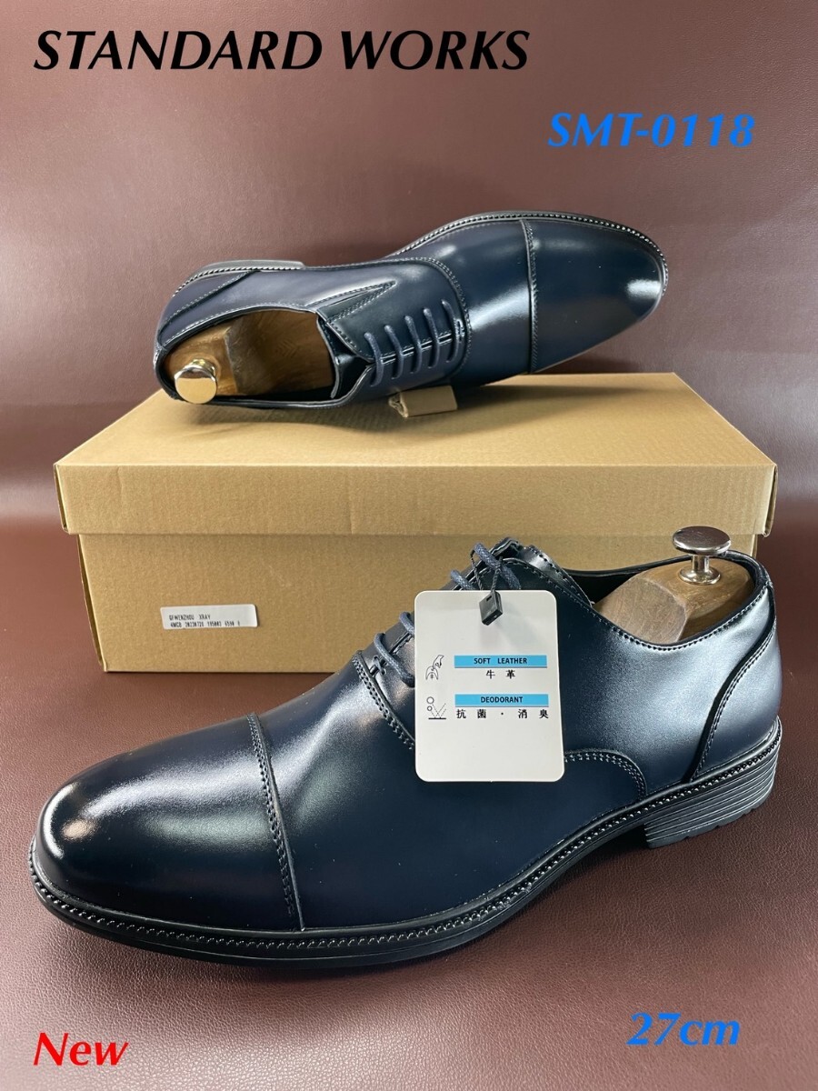 - 名機降臨!定6998円/未使用品!名作英国デザイン!スタンダードワークス【SMT-0118】ストレートチップレザーローファー/牛革 紺 27.0表記