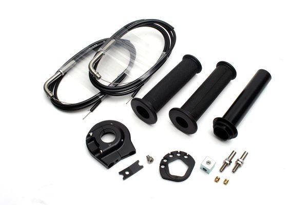 ほぼすべてのハンドルに対応可能な最長1400mmの汎用ワイヤーを付属した、ハイスロットルキットEVO2の汎用キット。