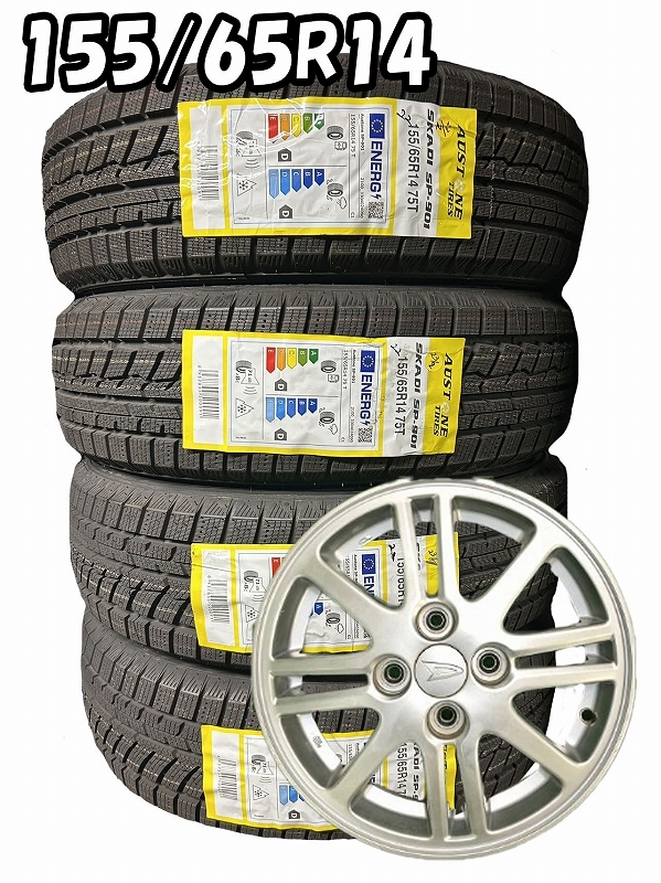 - 2024年製 155/65R14 75T Austone SP-901 新品スタッドレス/中古 アルミホイール 4本【組み付け無料バランス込み】