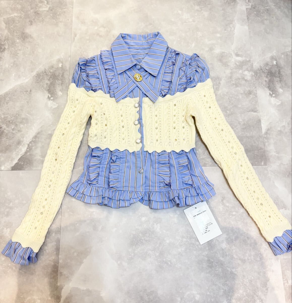 - インポートオフショルダーデザインストライプ長袖シャツ・ブラウス