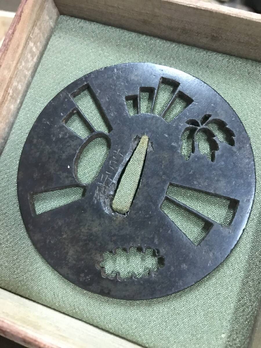 - [R7-50] 透かし鉄鍔 吉正 木箱入り 武具 日本刀装具 アンティーク レトロ