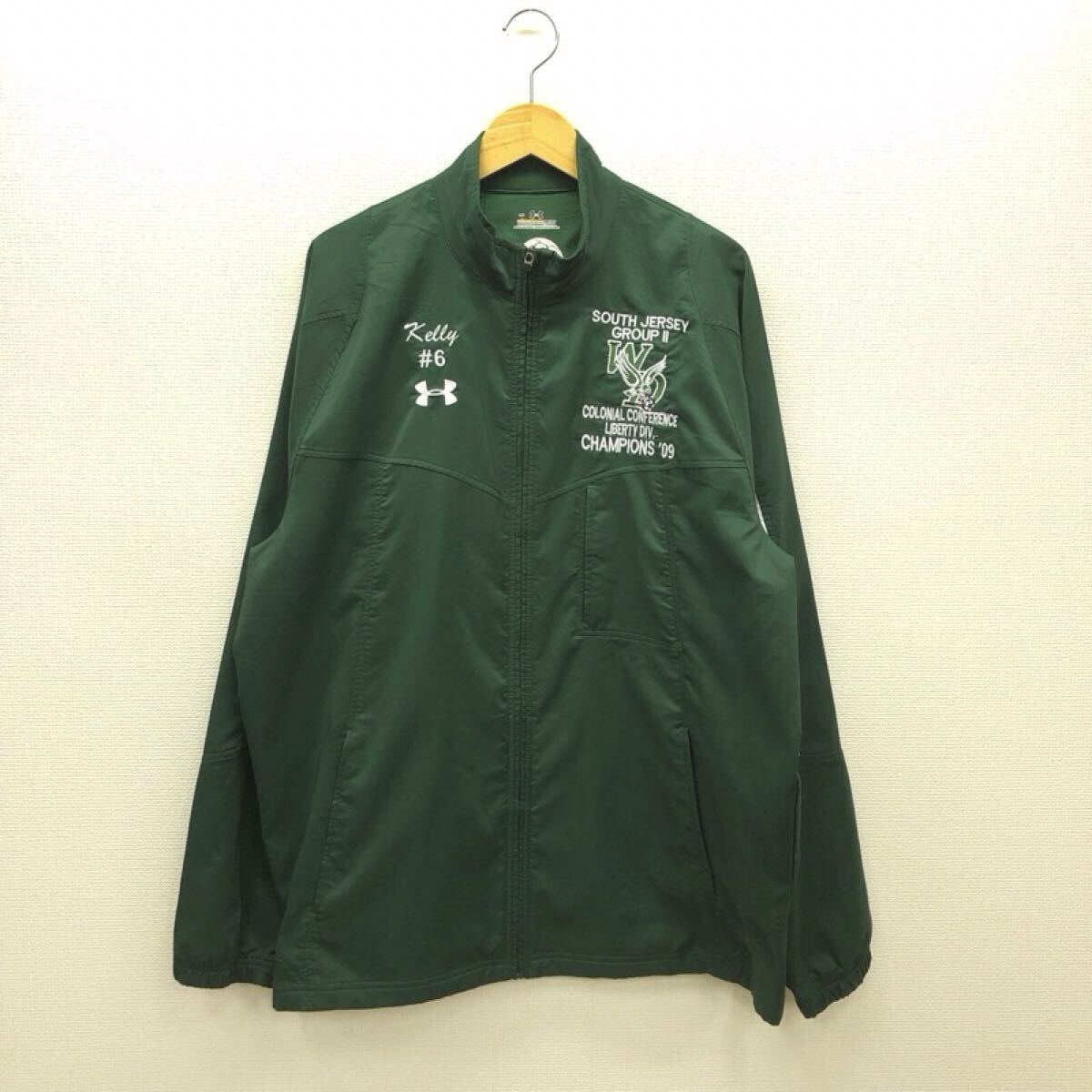 - 【GJ073】UNDER ARMOUR LGサイズ ウィンドブレーカー グリーン イヤホンホール付き ブランド古着 アンダーアーマー スポーツウェア送料無料