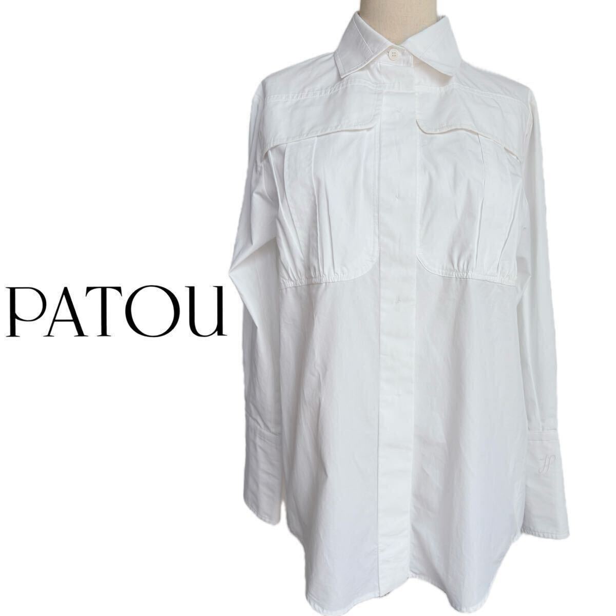 > 新品12万9800円 PATOU パトゥ オーガニックコットンポプリン サファリシャツ 左袖にJPモノグラム刺繍 ストレートシルエット シャツカラー白
