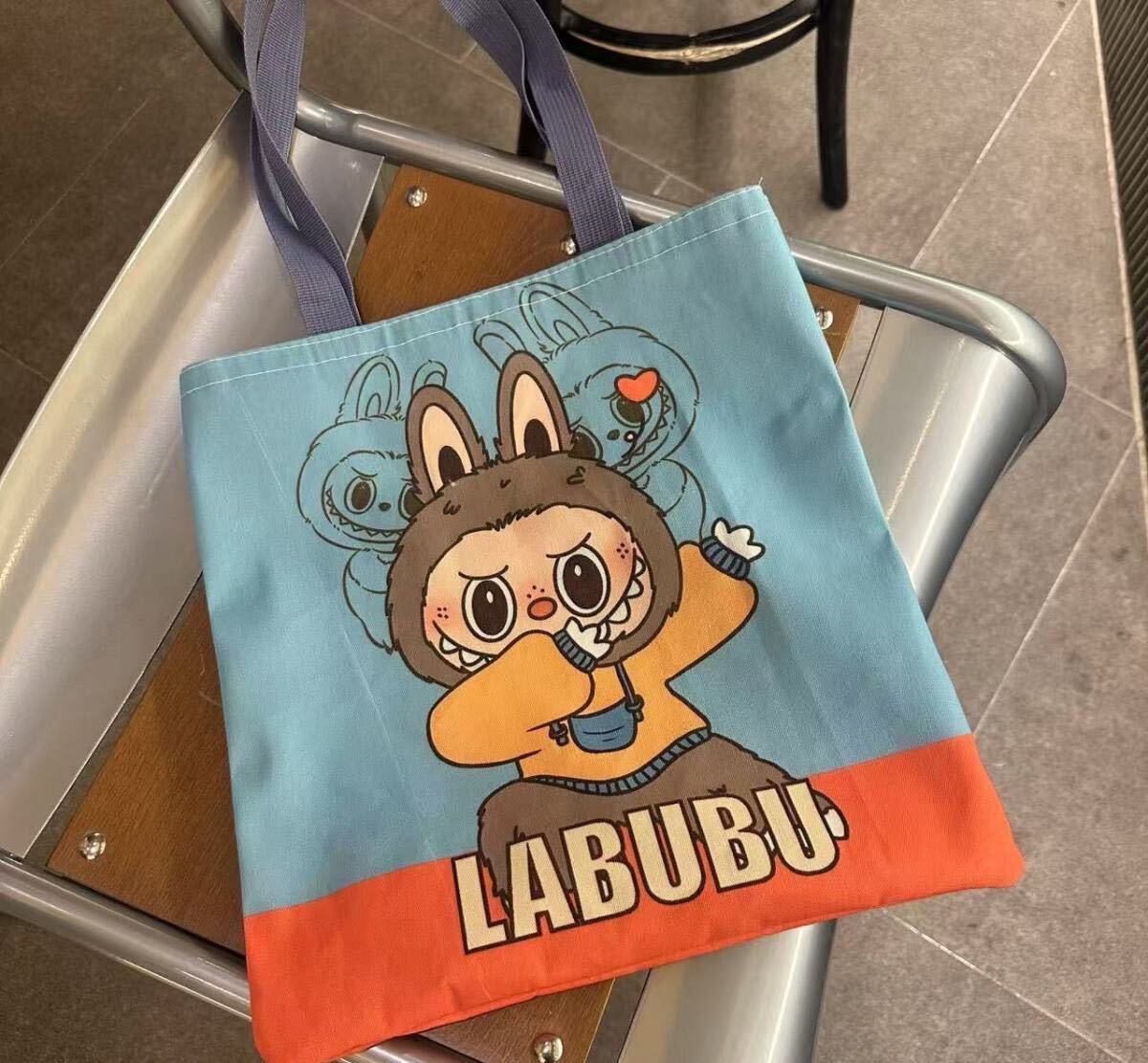 - Labubu エコバッグ トートバッグ両面同じ柄 ブルー