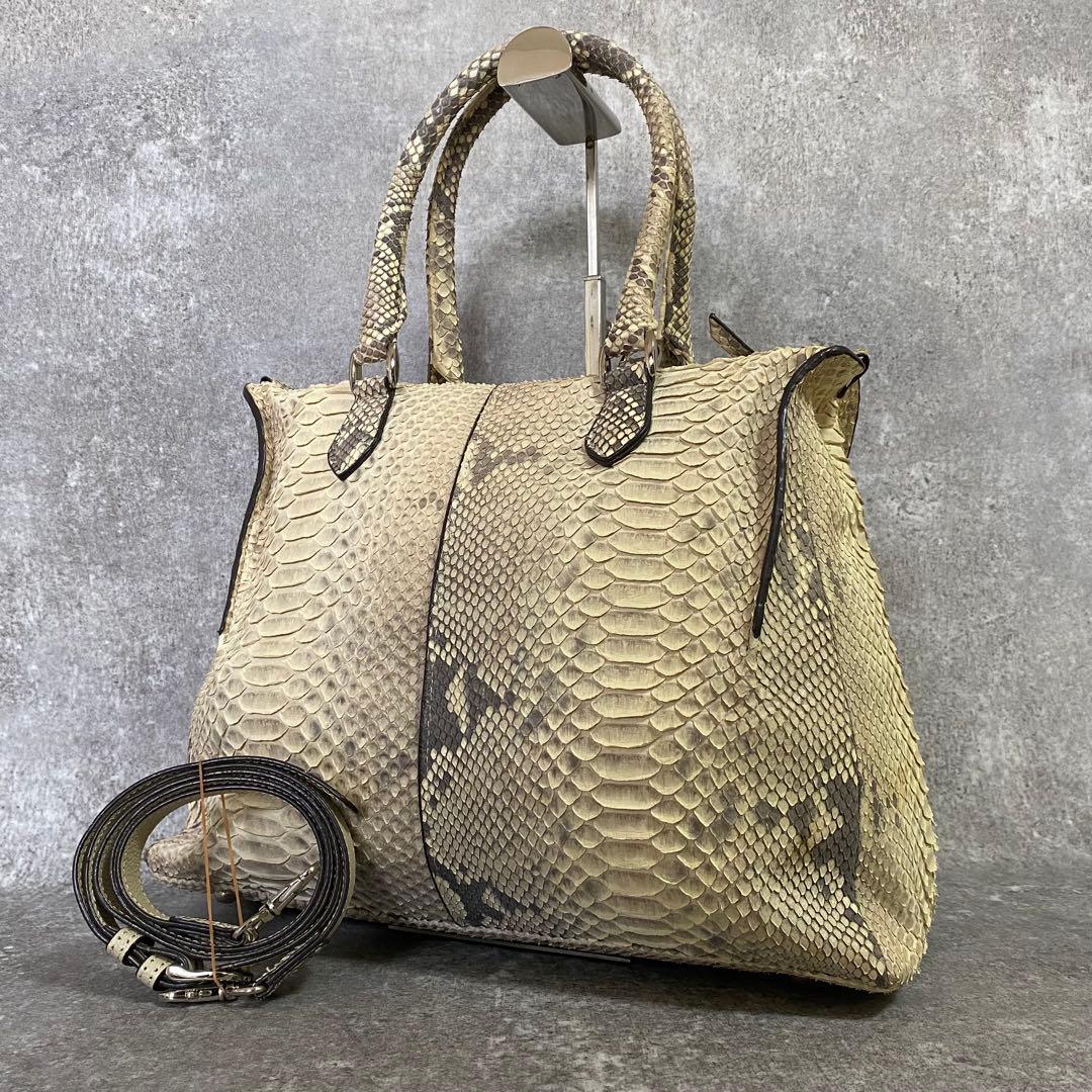 - パイソン 蛇革 ヘビ ワンショルダー ホーボー A4 レザー 肩がけ