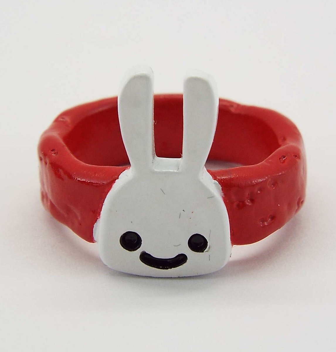 - T3604〇CUNE/キューン ウサギデコボコリング SILVER925/シルバー925(メッキ加工) FG13EM262 サイズ2(17号) レッド 指輪/リング/美品