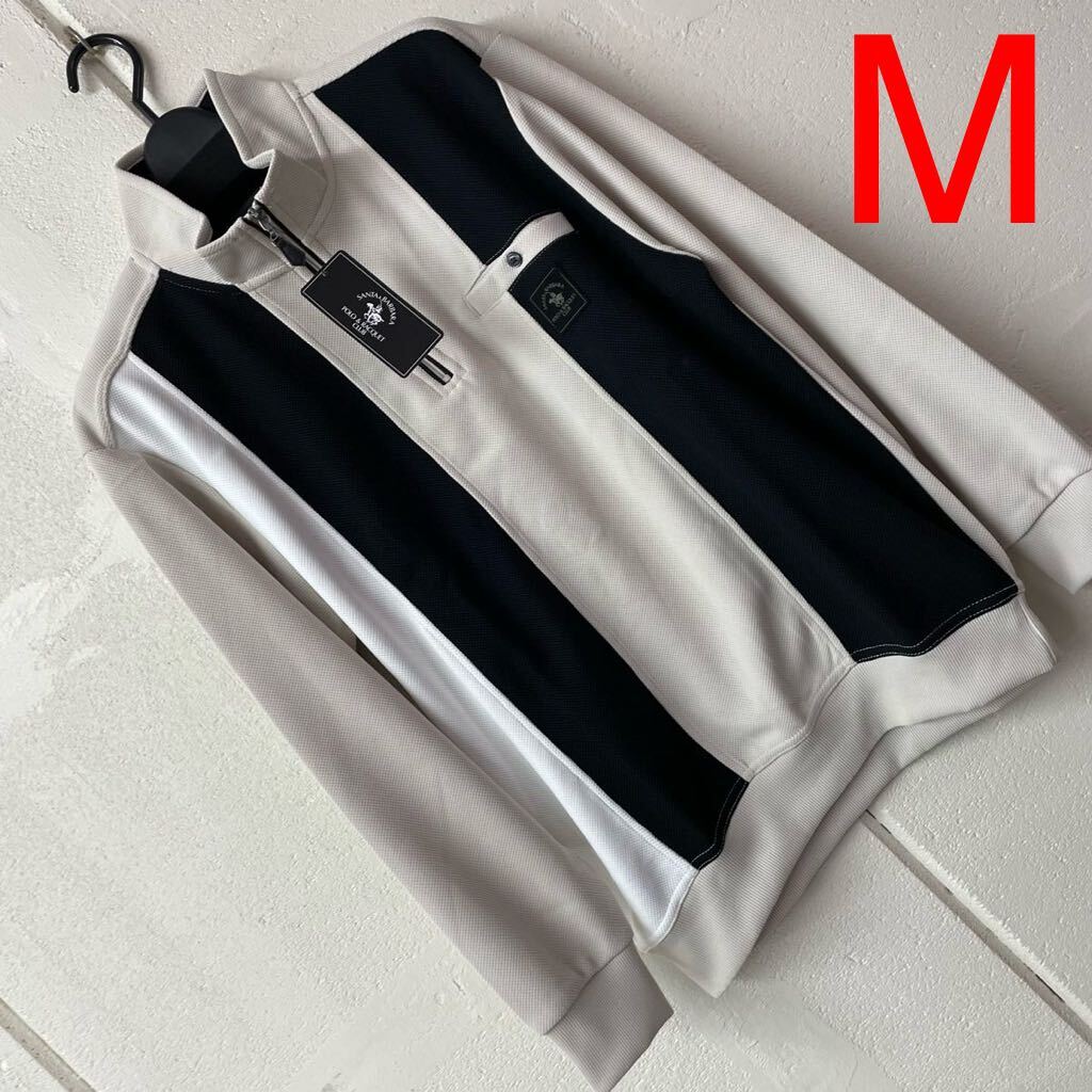 - 訳ありMサイズメンズハーフジップトレーナー サンタバーバラポロクラブ ベージュ黒