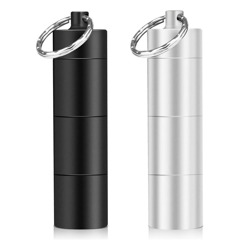 - 2色セット ピルケース 携帯 キーホルダー3連結 薬 薬入れ 外出 防水 サプリケース 持ち運び ネックレス キーリング アルミ合金 おしゃれ