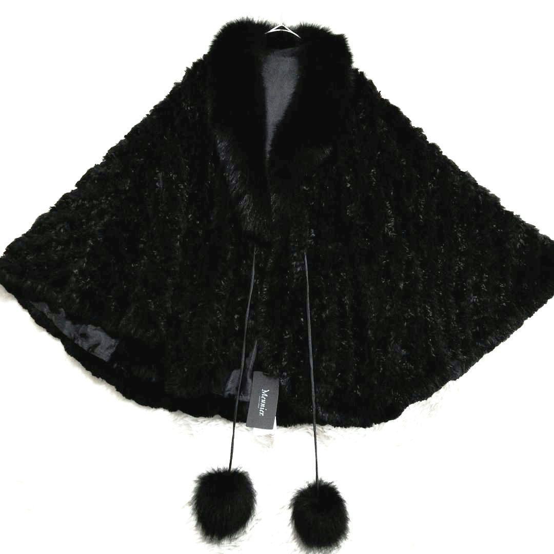 - タグ付き 未使用 ブルーフォックス ラビット ファー ポンチョ ボンボン y2k