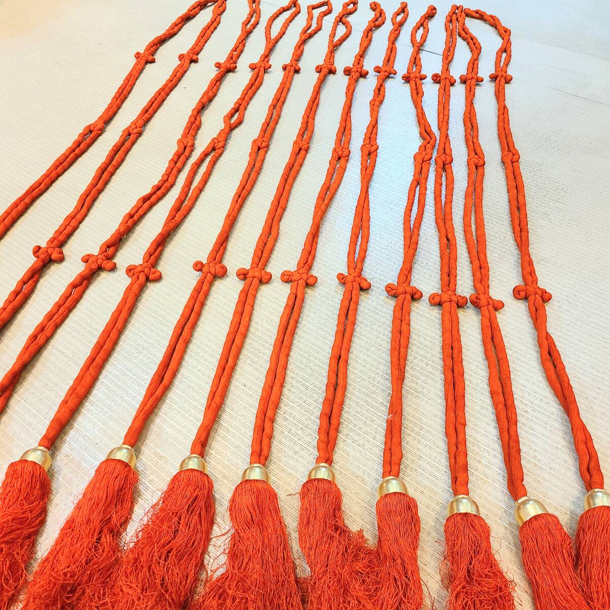 - ◆赤地 仏教 紐飾り 幡? 十二流◆ 時代衣装古裂古布法衣装束狩衣神主衣装巫女公家衣装有職衣装袈裟打敷表具裂金襴