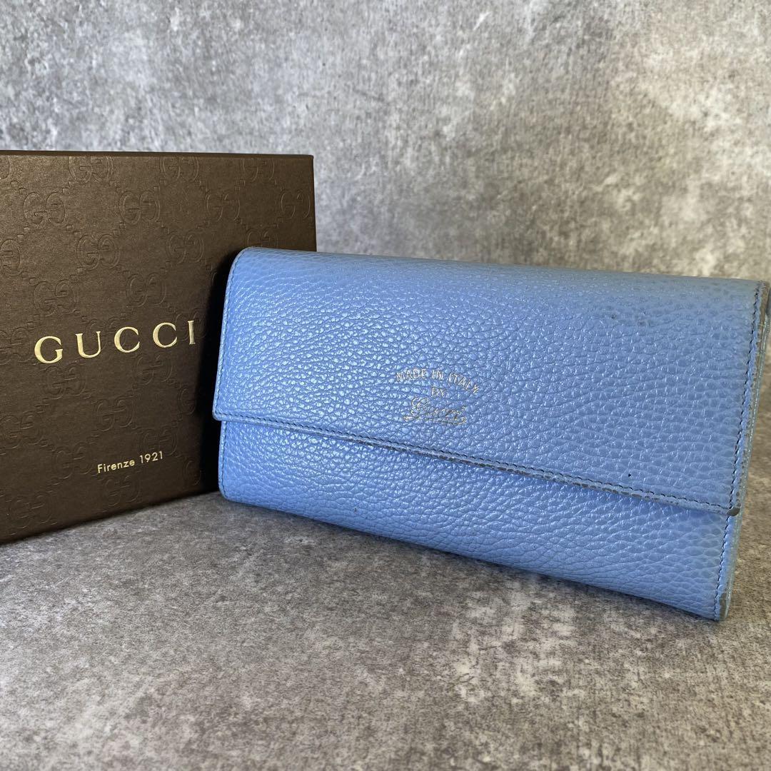 - GUCCI グッチ 長財布 レザー ブルー ヴィンテージ