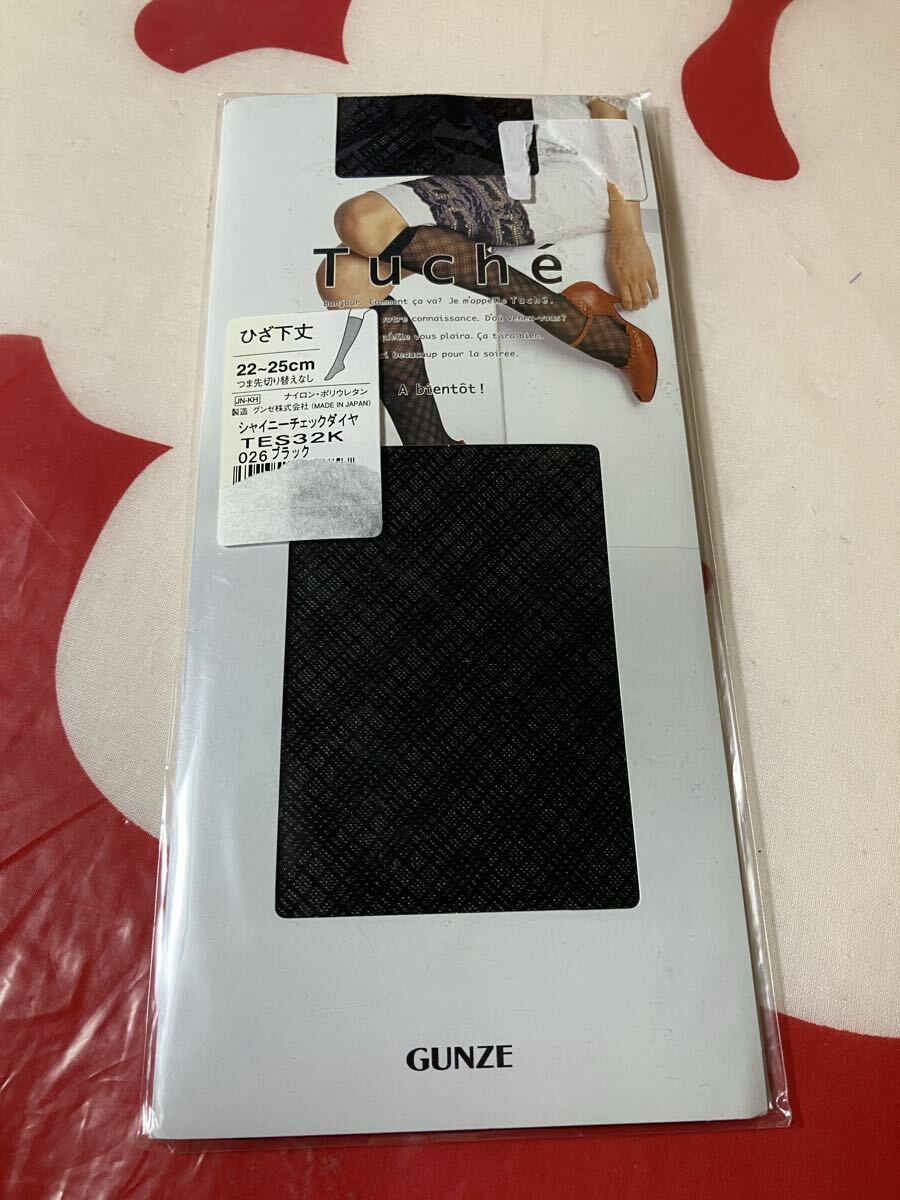 - GUNZE Tuche ひざ下丈 シャイニーチェックダイヤ ブラック ショート ストッキング グンゼ short stocking 22-25cm 黒 柄 デザイン 模様