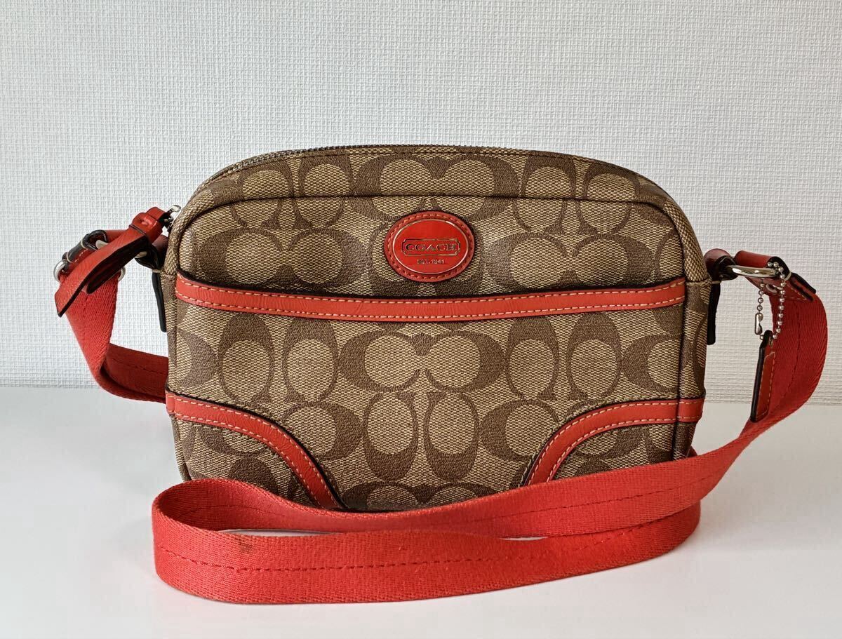 > ☆ COACH コーチ ショルダーバッグ シグネチャー オレンジ 現状品☆