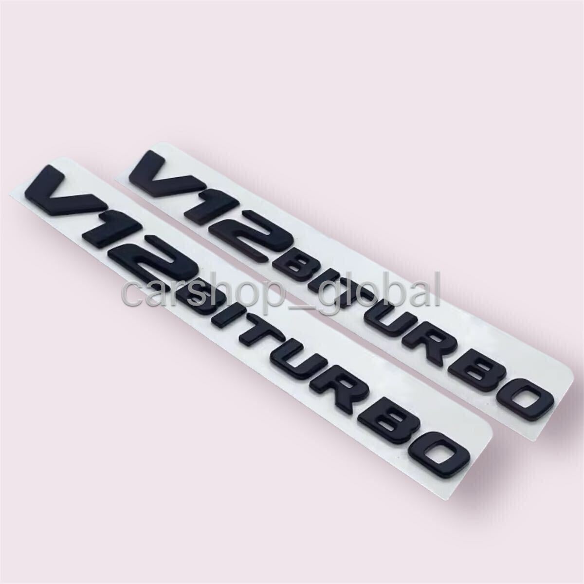 > ベンツ V12 BITURBO サイドエンブレム 2個 マットブラック フラット A/B/C/E/S/G/CLS/GLK/GLS/SLK/SLS/GLE/GLS/AMG/SL65/CL65/S65/57S/62S