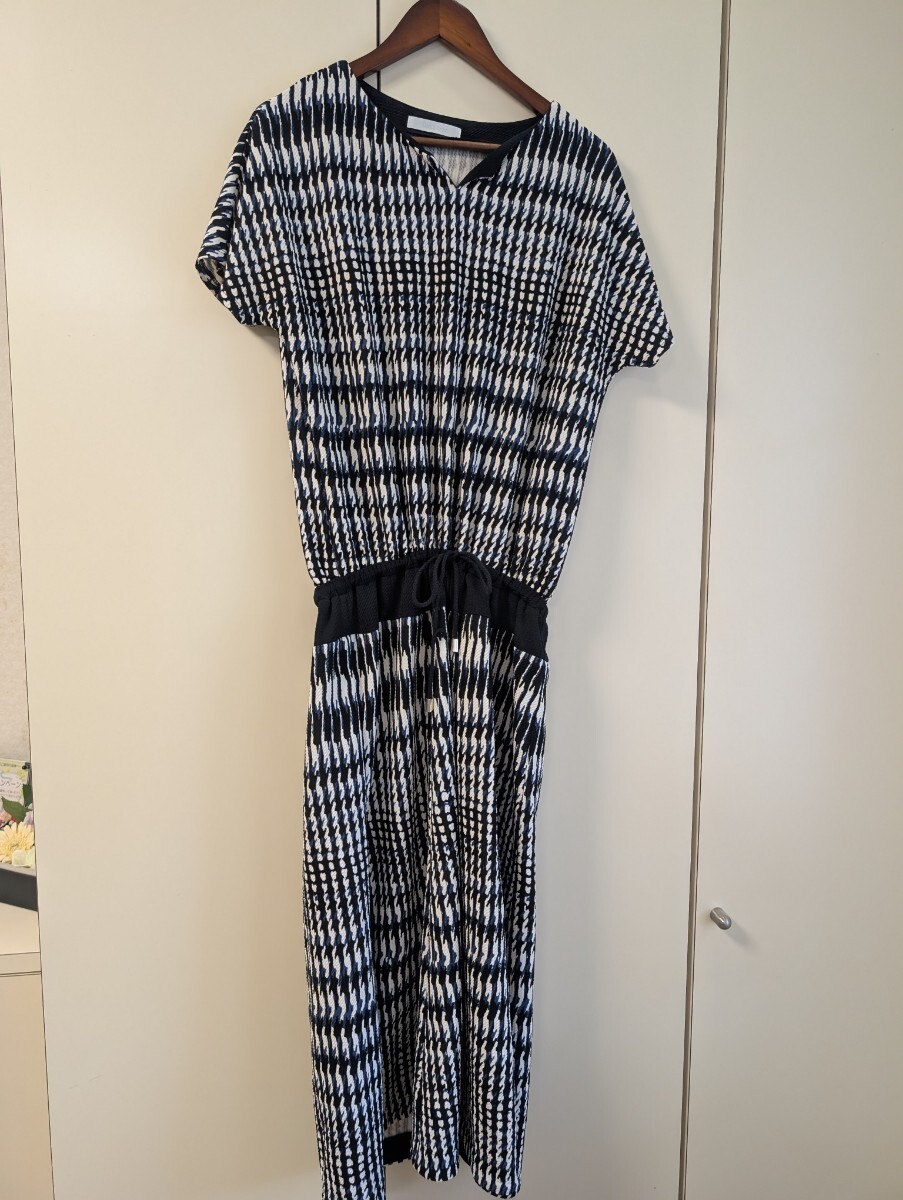 - 極美品 Do 総柄半袖ロングワンピース M ネイビー 白
