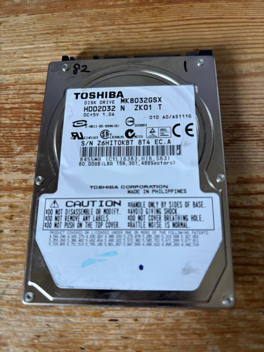 - 動作確認OK 2.5インチ TOSHIBA MK8032GSX 80G 82