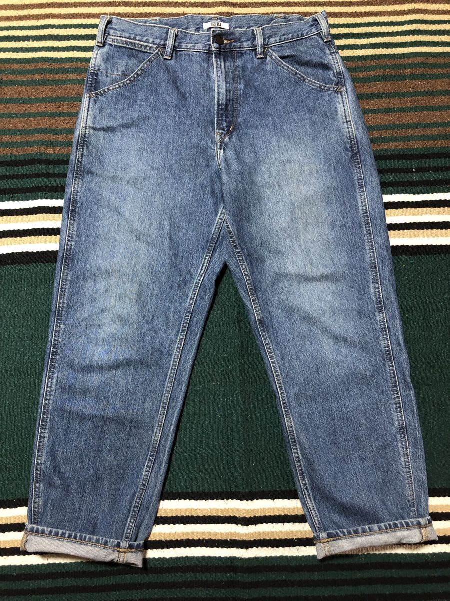 > UNIQLO U ユニクロ ワイドフィットテーパードジーンズ w32 デニム ルーズフィット アメカジ 股下69 チェーンステッチ 古着 90's アタリ