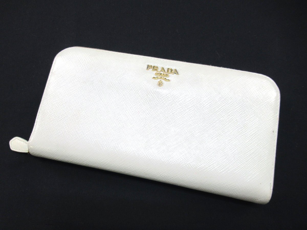 > ★【B送900円】2533 PRADA プラダ サフィアーノ 長財布 ロングウォレット ラウンドジップ 白 レザー イタリア製 ゴールド金具