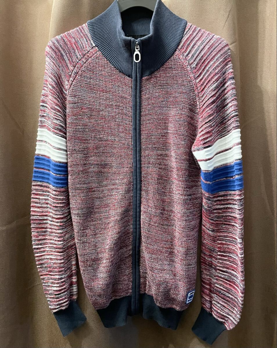 - G-STAR RAW フルジップオーガニックコットンセーター レッド×ネイビー XSサイズ ジースターロウ カーディガン ニット 赤 紺
