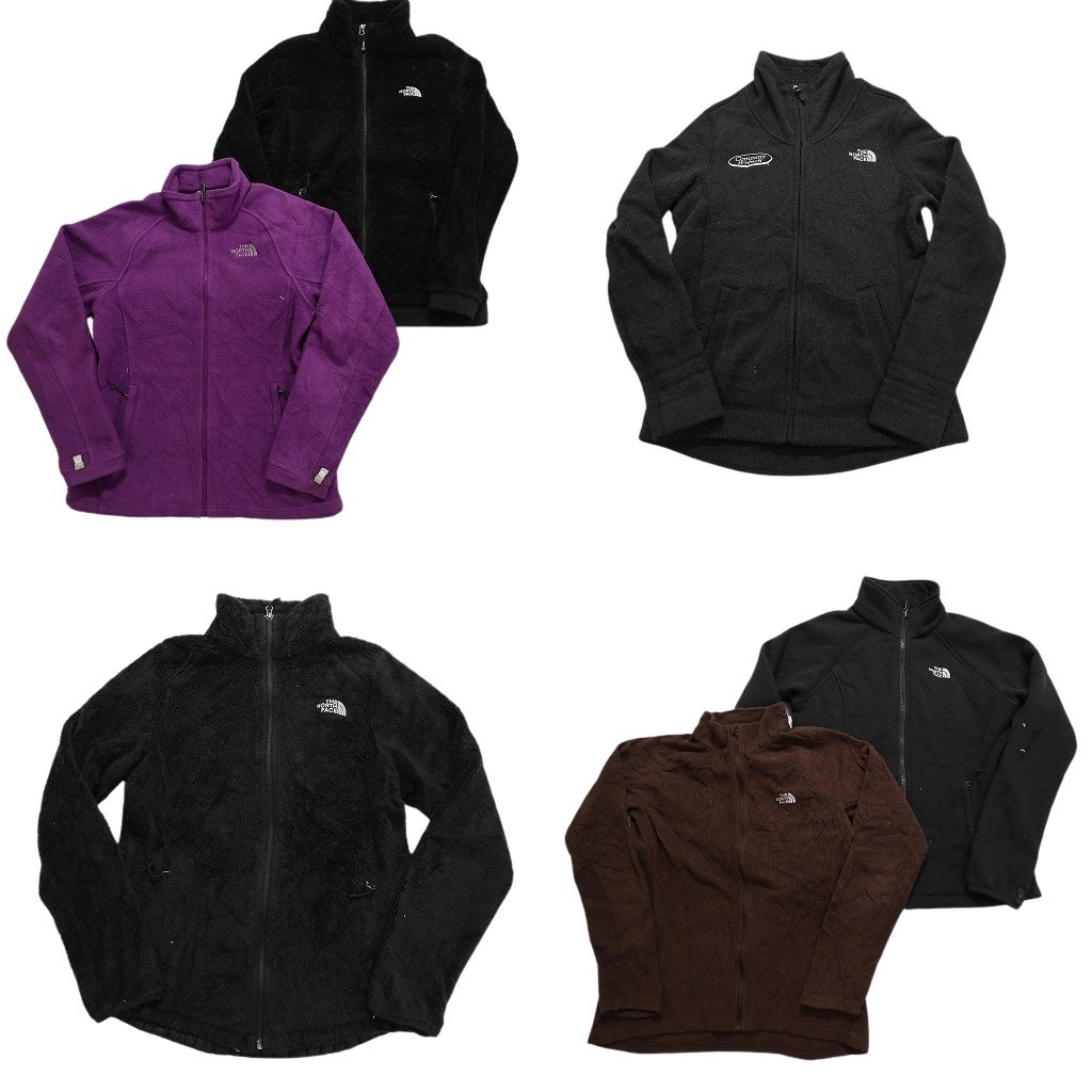 > 古着卸 まとめ売り ノースフェイス フリース 6枚セット (レディース M ) フルジップ 刺 スタンドカラー ブラック 中古 古着 NC2778