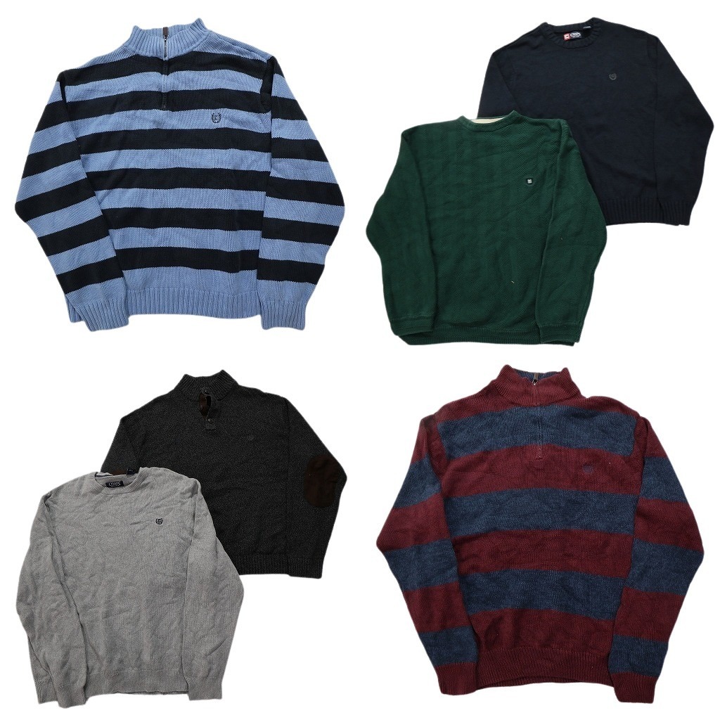 - 古着卸 まとめ売り チャップス CHAPS セーター 6枚セット (メンズ 2XL ) ボーダー ハーフジップ エルボーパッチ NC2811 1円スタート