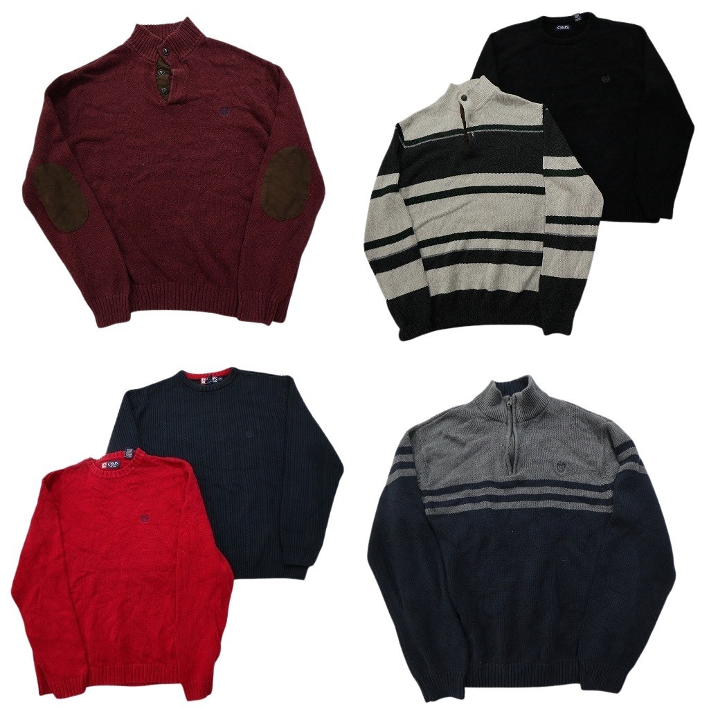> 古着卸 まとめ売り チャップス CHAPS セーター 6枚セット (メンズ L ) エルボーパッチ ライン ハーフジップ クルーネック 中古 古着 NC2817