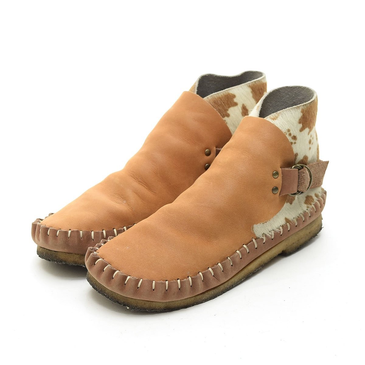 > ◇529413 BANANA BACS KOBE バナナバックス 神戸 ショートブーツ カウハラコブーツ サイズ23.5cm相応 レディース ベージュ ホワイト