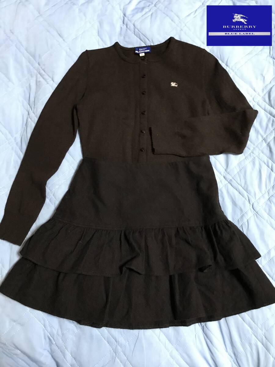 - バーバリーブルーレーベル 茶色毛100%すそ2段フリルのスカート 36 b71