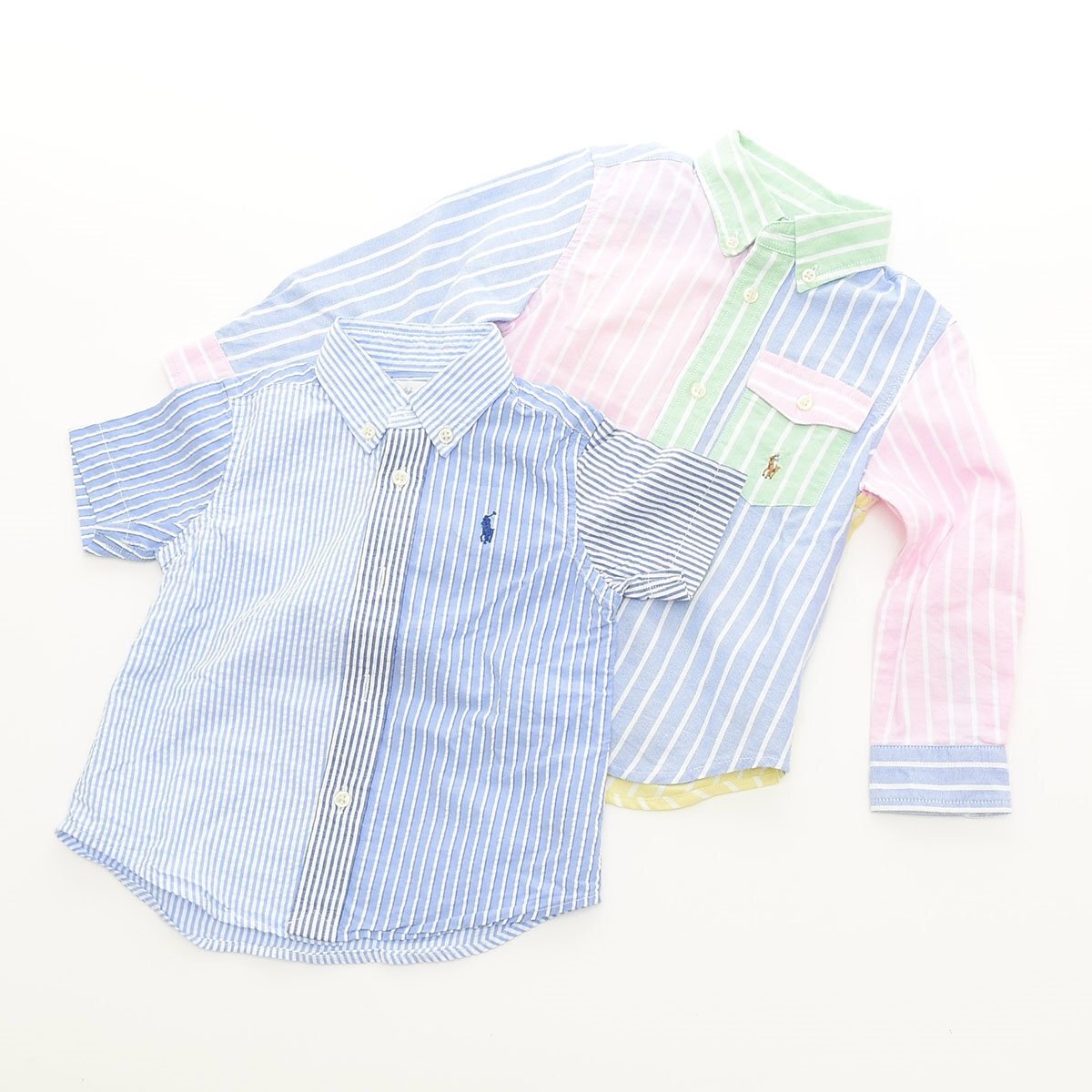 > ▲552029 RALPH LAUREN ラルフローレン 半袖・長袖シャツ ストライプ 85-90cm(18M-24M) 子ども クレイジーカラー ブルー他 2着セット