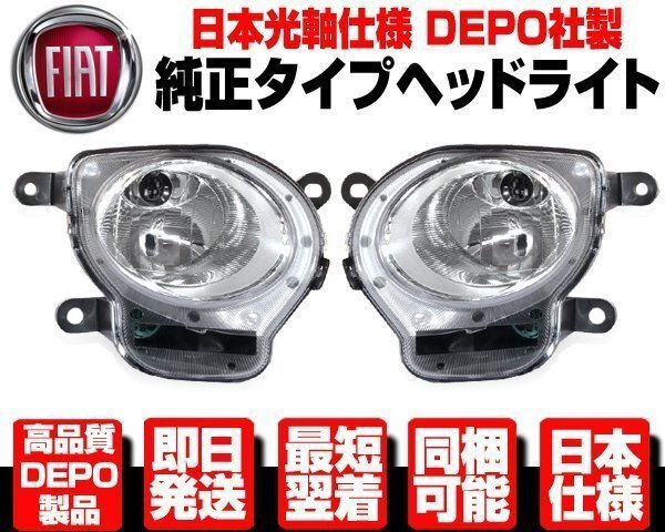 - ★DEPO製 日本仕様 ハイビーム ヘッドライト ヘッドランプ 左右 純正TYPE 【適合 フィアット アバルト 08-15y 前期 500 500C 595 595C N512