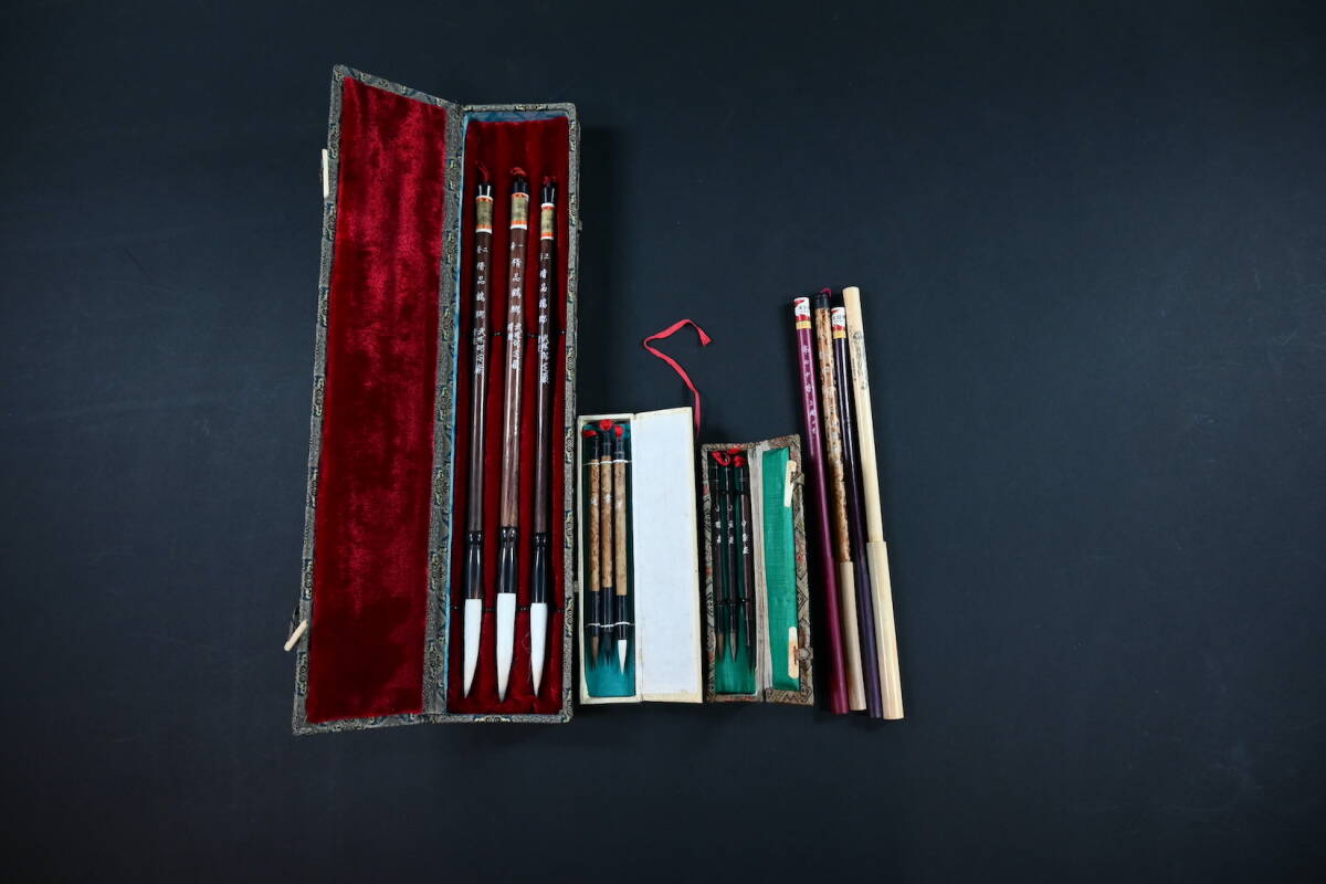 - D1 邵芝巖筆荘 唐筆 武林邵芝巖筆荘 趙様和題 狼 兎 紫 羊 牙 斑竹 竹 上海 中国 古玩 古筆 書道具 文房四宝 芝蘭園