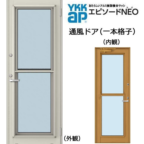 | 商品名 | アルミ樹脂複合サッシ エピソードNEO 通風ドア 一本格子 W780×H2030 (07420) 複層 ドアクローザー付 |