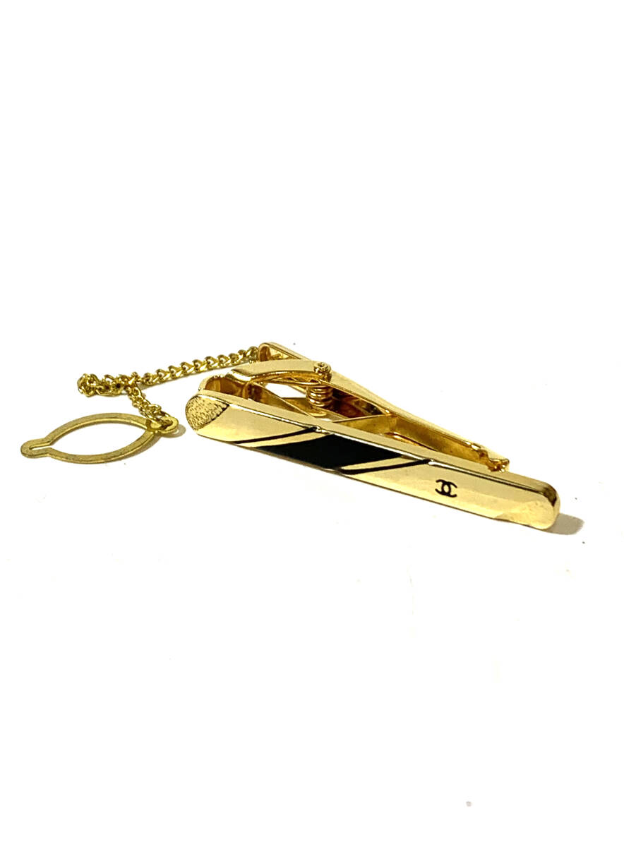 > X72★ CHANEL ネクタイピン アクセサリー ロゴ 24KGF ゴールド&ブラック ヴィンテージ ビンテージ 現状品