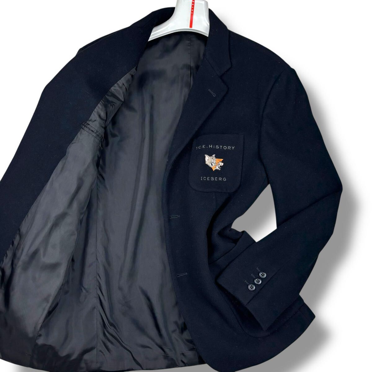 > 1円 美品 XL.LL~XXL.2XL アイスバーグ ICEBERG テーラードジャケット カシミヤ混 トムとジェリー コラボ イタリア製 メンズ ブラック 50