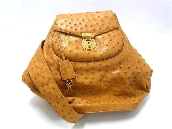 - 1円 ■極上■本物■ Salvatore Ferragamo フェラガモ AW 21 4740 ガンチーニ オーストリッチ 鍵付き ショルダーバッグ キャメル系 FV3156