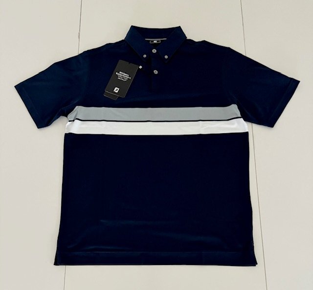 - FJ フットジョイ ダブルチェストライン半袖ボタンダウンシャツ FJ-S24-S13 (ネイビー) L
