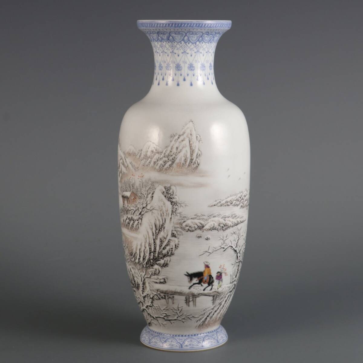- ▽鴻▽民国朝時代 陶磁器 何許人製 粉彩雪景図賞瓶 箱付き 染付 時代物 中国古美術 骨董品