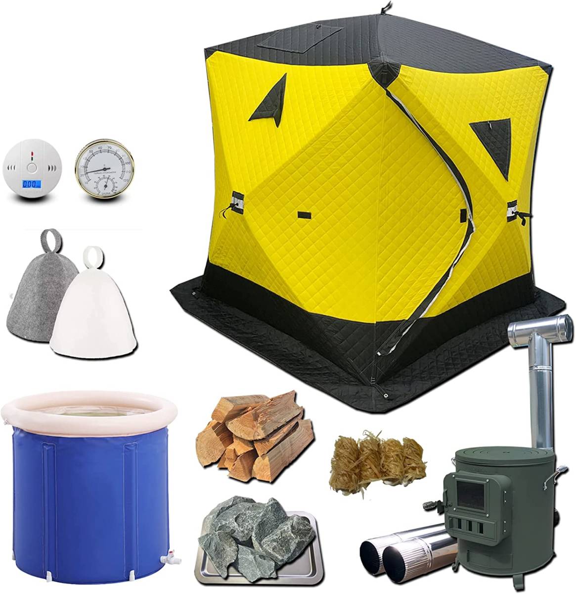 - サウナテント 水風呂セット 4人用 ロウリュができる すぐに使える テントサウナ 外寸幅225cm×奥行225cm×高さ210cm 家庭用サウナ