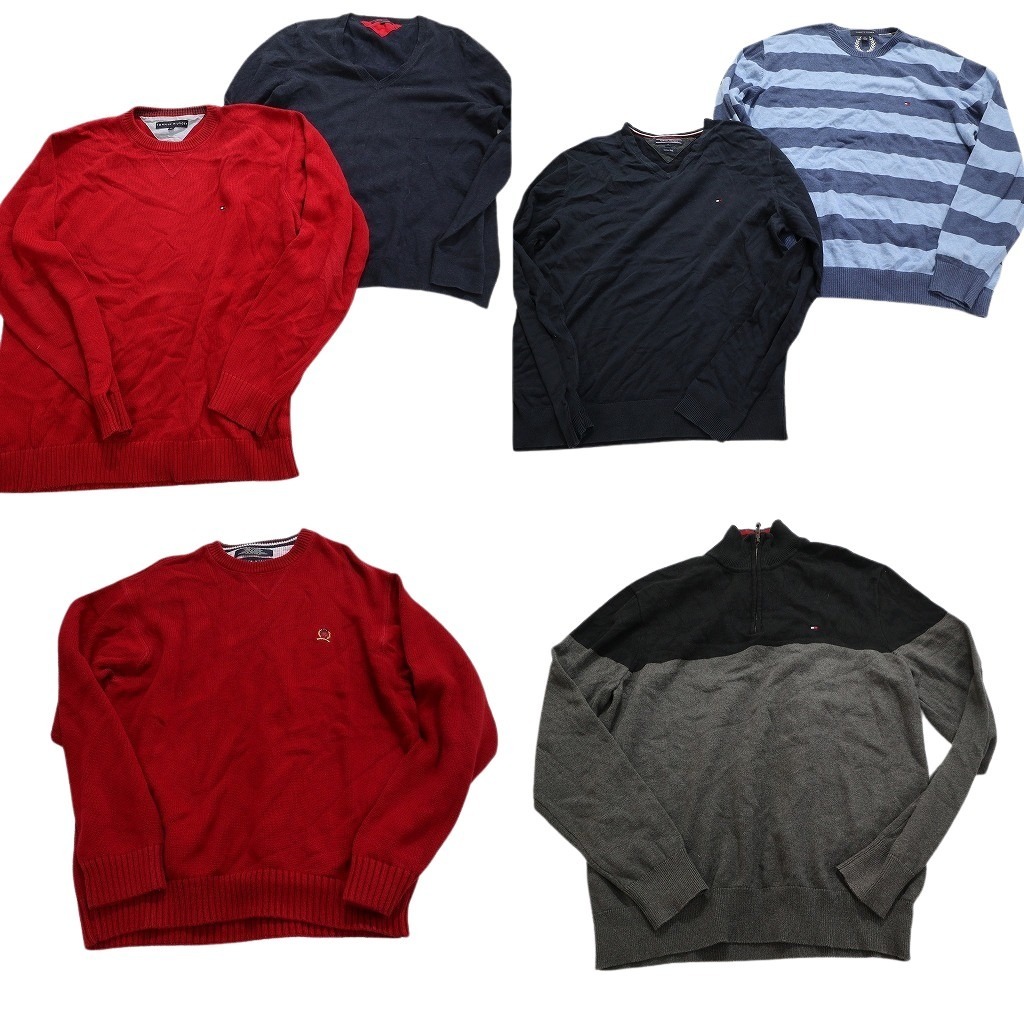 - 古着卸 まとめ売り トミーヒルフィガー セーター 6枚セット (メンズ XL ) ハーフジップ ボーダー Vネック ツートン NC2876 1円スタート
