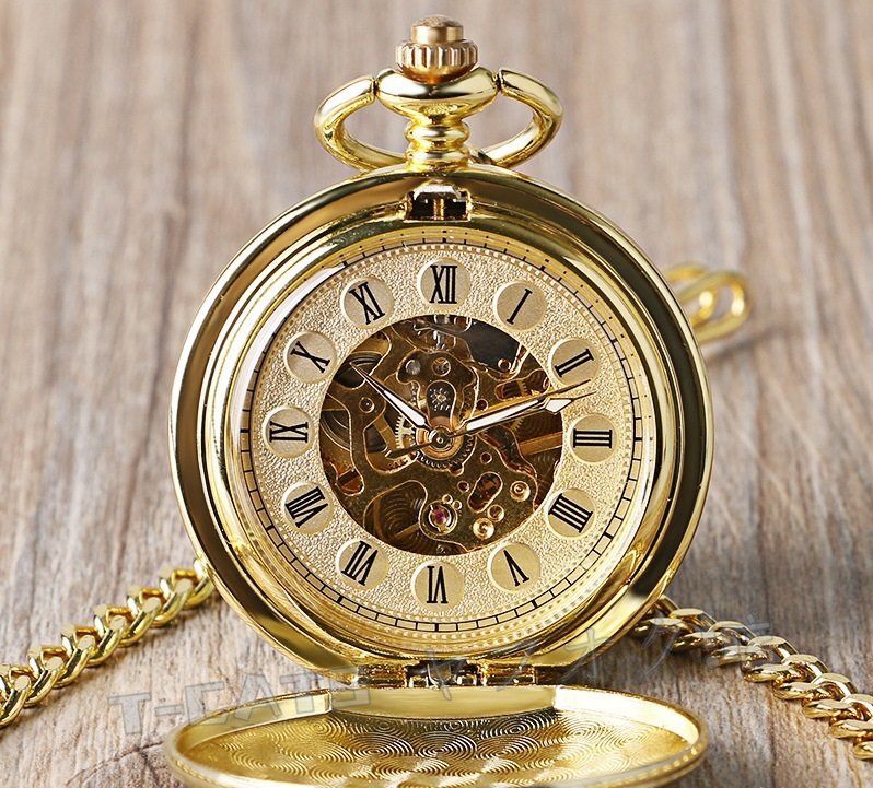 - ☆新品手巻き ナヴィダード 機械式懐中時計 フルゴールドカラー